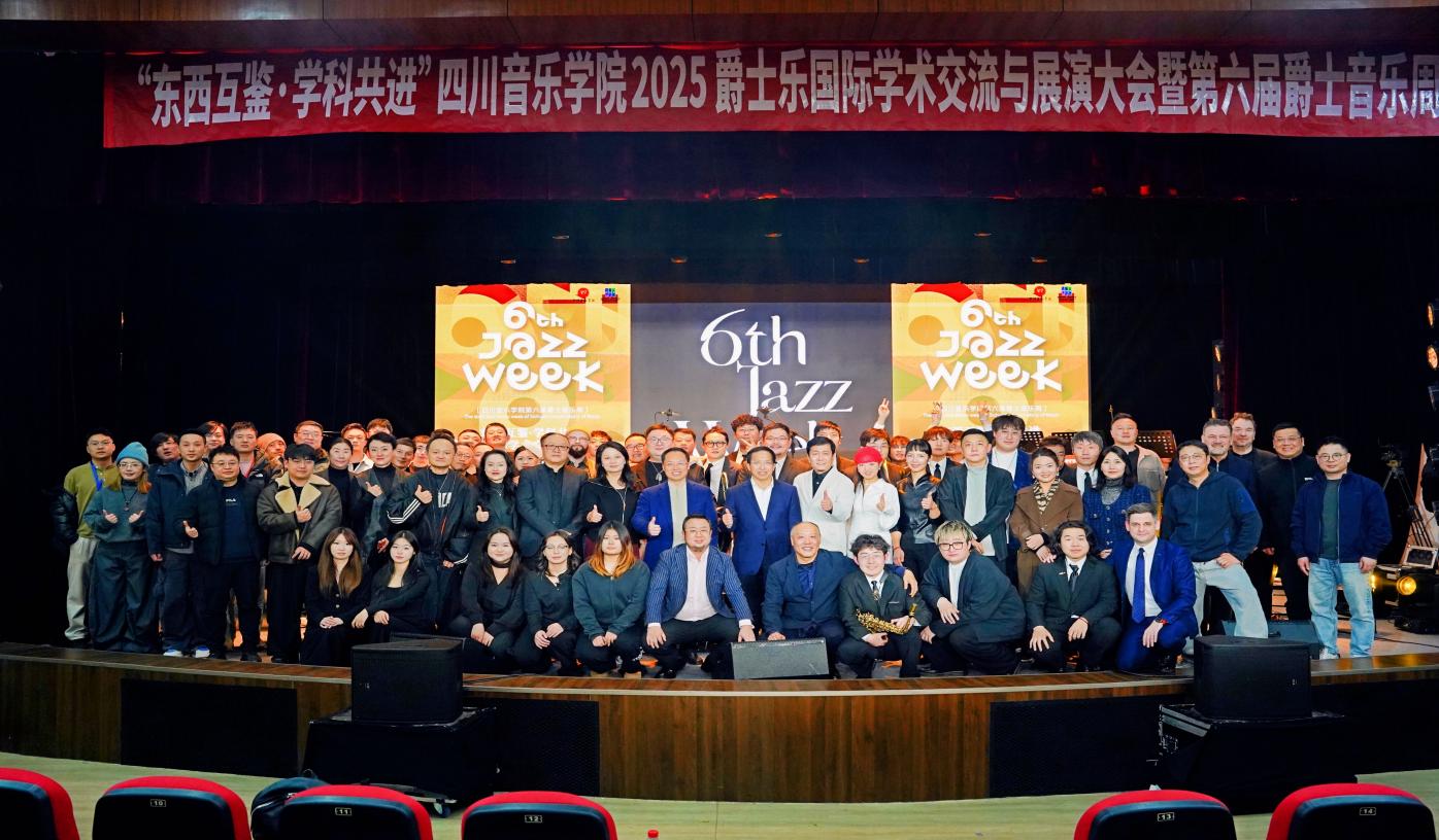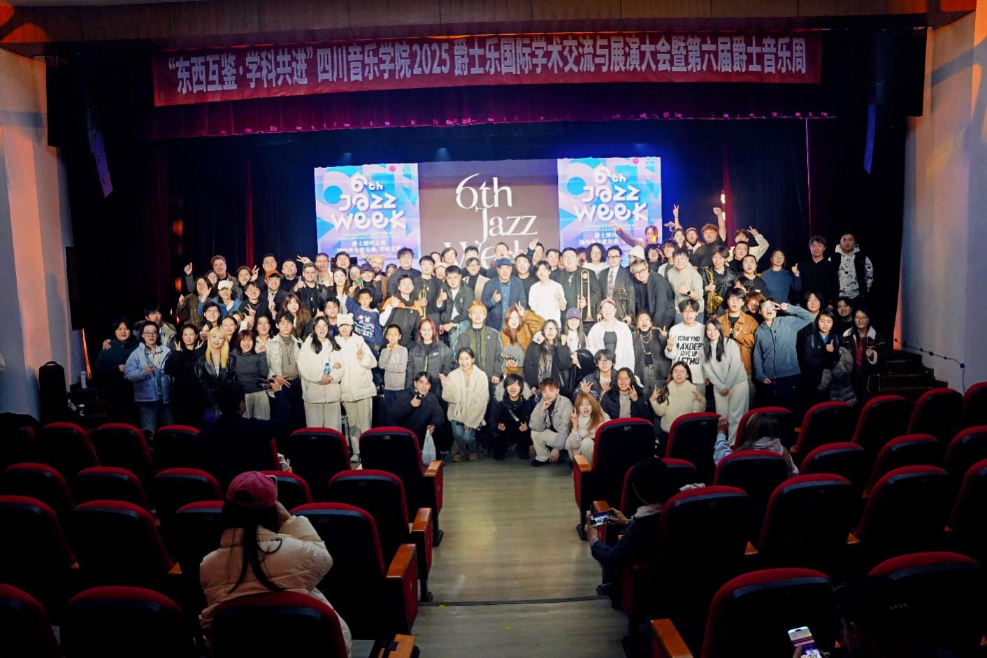 2025年12月8日-12日,以“东西互鉴·学科共进”为主题的四川音乐学院第六届爵士音乐周成功举办,我院院长汪敏、爵士钢琴教师白天、爵士长号教师曹侃、爵士长号老师高翊钧应邀参加。8日19:30,曹侃、高翊钧两位老师加入了四川音乐学院爵士大乐队,为到场的各位领导、老师和同学们带来了一场精彩绝伦的演出。本届音乐周汇聚了来自澳大利亚、德国、意大利及国内十余所顶尖艺术院校的逾80位专家学者,通过10场音乐会、9场学术讲座、5堂大师课及1场专题研讨会,搭建了高规格的国际化学术交流平台。我院教师深度参与,表现出色,充分展现了专业能力与教学成果。