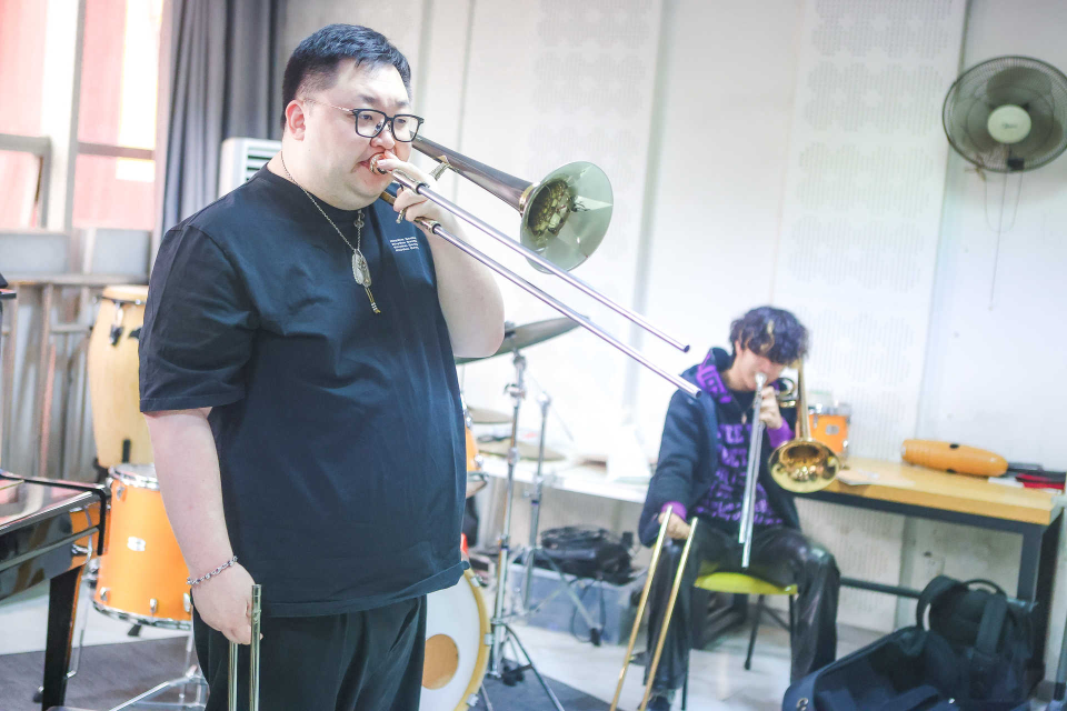 在下午的时光中我院爵士长号教师曹侃老师和爵士小号教师高翊钧老师参演了“东西和鸣-中西融合原创作品专场音会”,两位老师演绎了自己的原创作品《sandstone》《On my way home》,此次演出以原创为纽带搭建中西文化对话桥梁,打破了文化边界。