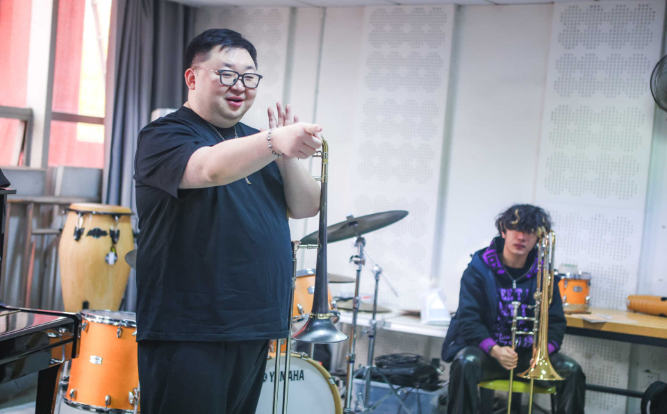 12月12日上午10:00,我院爵士长号教师曹侃老师为四川音乐学院爵士铜管专业学生举办大师课。他针对学生不同阶段,从音色训练、演奏技巧到即兴思维提供了实用建议。学生反馈收获颇丰,尤其在音色塑造与现代音乐语言理解上获得了启发,有助于拓展创作视野与审美能力。