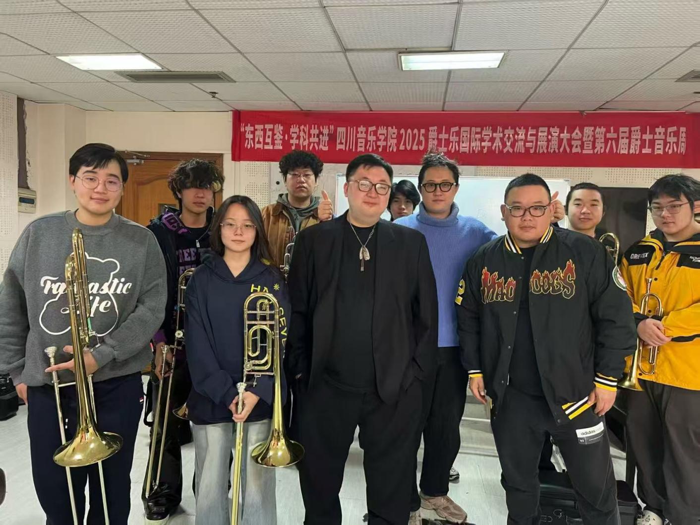 2025年12月8日-12日,以“东西互鉴·学科共进”为主题的四川音乐学院第六届爵士音乐周成功举办,我院院长汪敏、爵士钢琴教师白天、爵士长号教师曹侃、爵士长号老师高翊钧应邀参加。8日19:30,曹侃、高翊钧两位老师加入了四川音乐学院爵士大乐队,为到场的各位领导、老师和同学们带来了一场精彩绝伦的演出。本届音乐周汇聚了来自澳大利亚、德国、意大利及国内十余所顶尖艺术院校的逾80位专家学者,通过10场音乐会、9场学术讲座、5堂大师课及1场专题研讨会,搭建了高规格的国际化学术交流平台。我院教师深度参与,表现出色,充分展现了专业能力与教学成果。