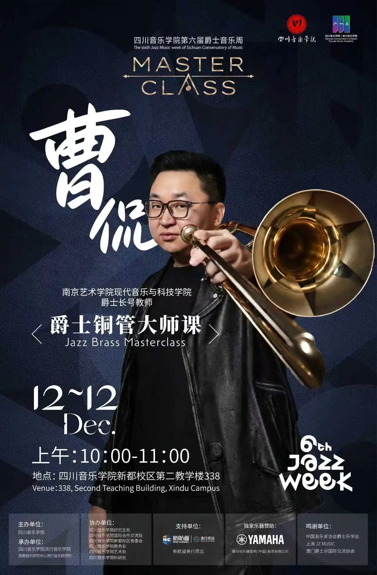 12月12日晚19:00,我院爵士长号教师曹侃参加了四川音乐学院第六届爵士音乐周闭幕式与全国高校爵士名家和学生们一同奉献出一场高水平的闭幕式演出,为“东西互鉴·学科共进”的系列活动画上圆满句号。